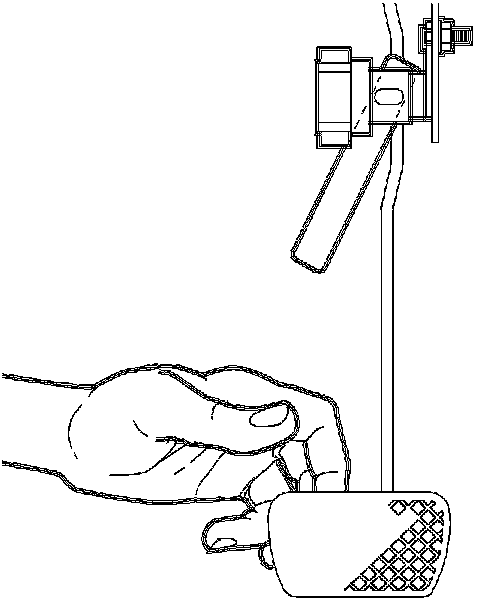 16. With the pedal released and the adjustment gage (1) still in position, tap the gage side-to-side:
