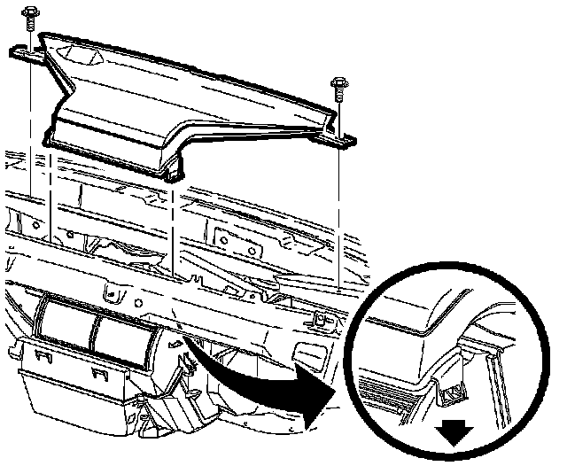 19. On Sedans, install windshield defroster nozzle duct into vehicle by snapping windshield defroster nozzle duct onto mode valve assembly and install screws. On Coupes, move windshield defroster nozzle duct from passenger side and snap windshield defroster nozzle duct onto mode valve assembly and install screws.