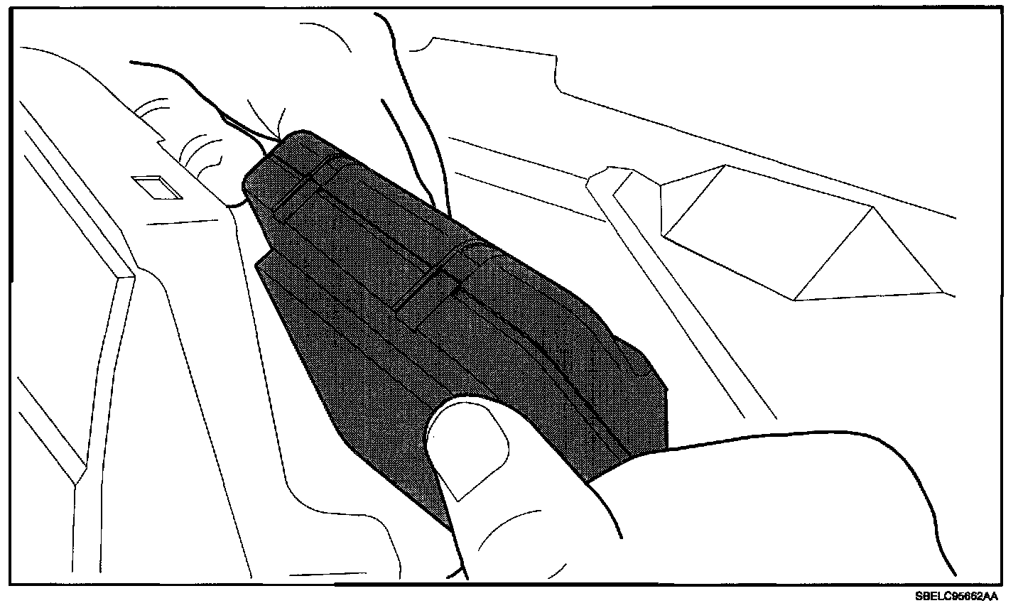 3. Grasp BCM under connector side and pull upward and back. Rock module from side to side to disengage adhesive material.
