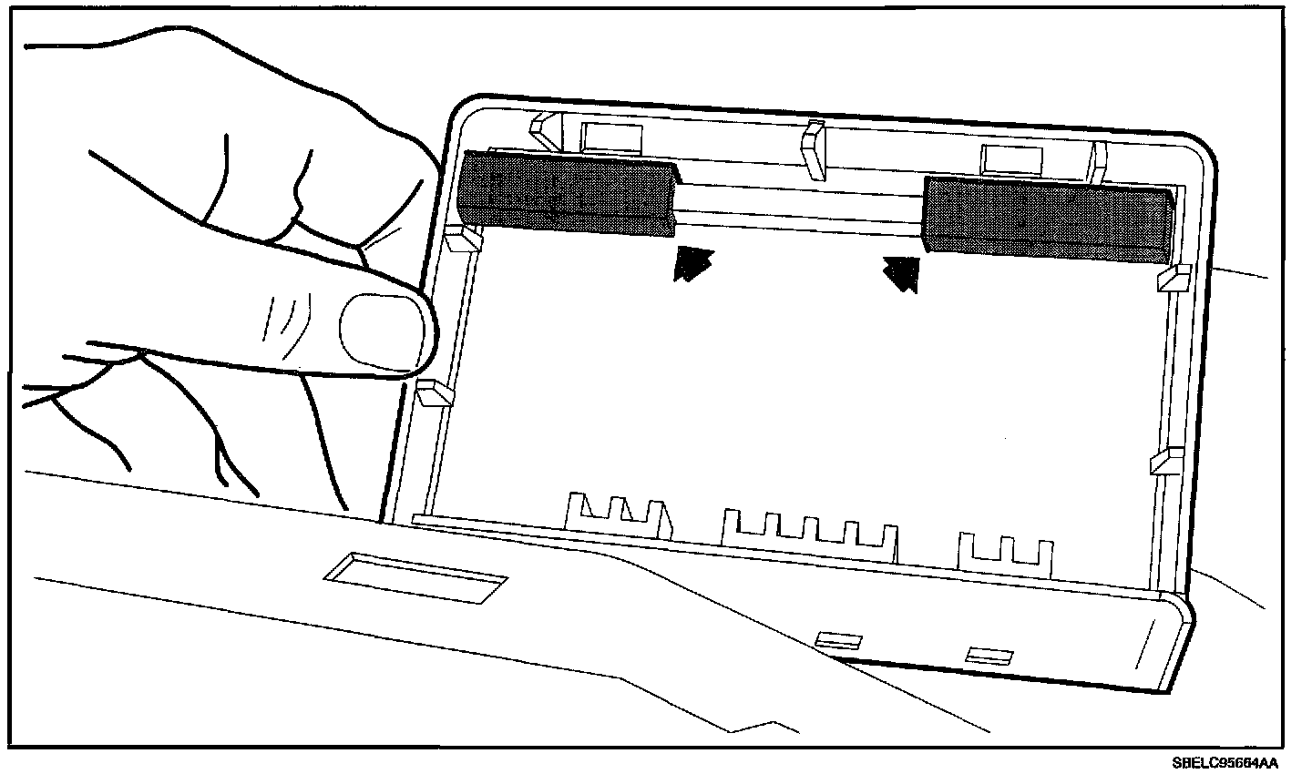 2.2 Disengage clips at locations by grasping edges of upper trim panel and lifting up.