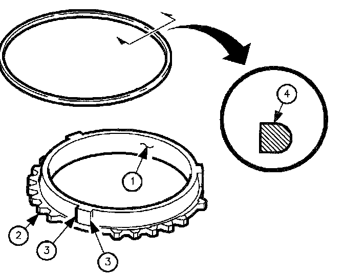 3. Inspect synchronizer blocker ring lugs (3) for excessive wear.