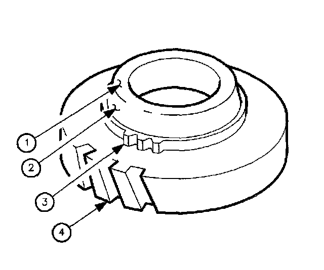7. Inspect clutching teeth (3) for excessive wear, chipping, or cracks.