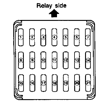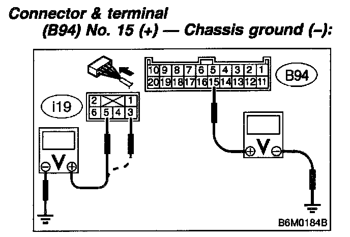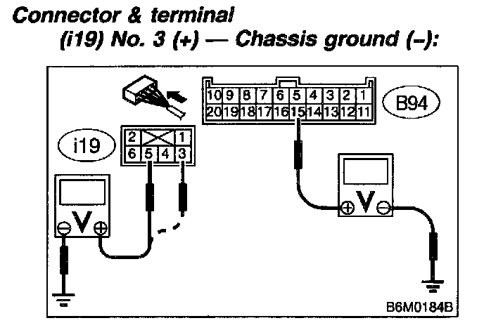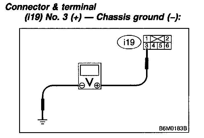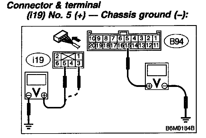 NOTE: Depress cruise control main switch with fingers while measuring voltage between (i19) No.5 and chassis ground.