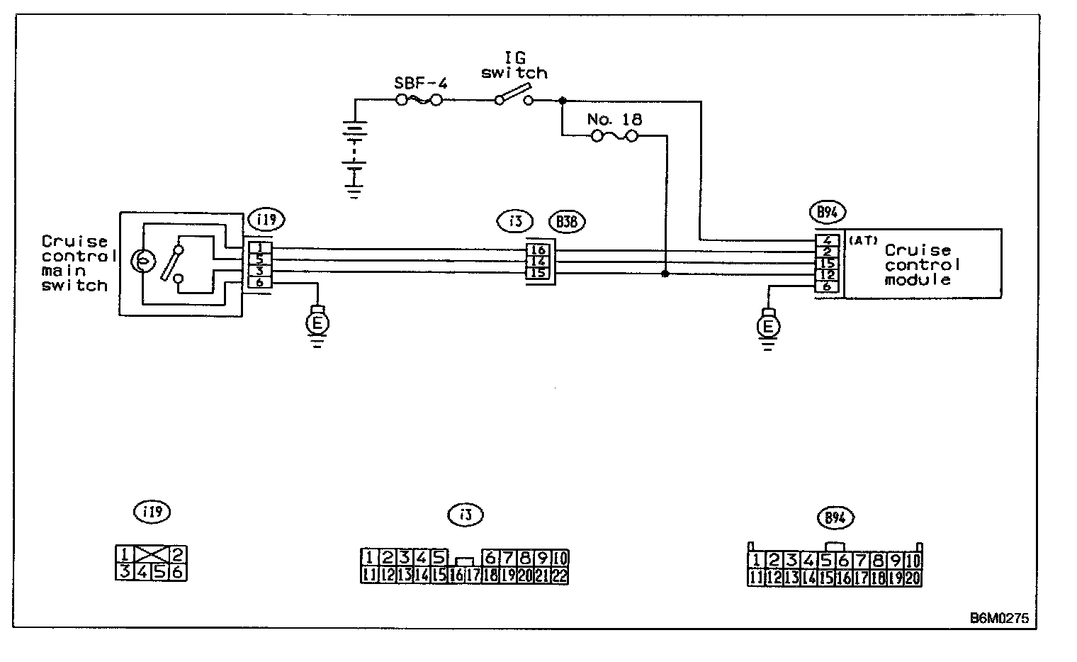 NOTE: When the main relay (built-in cruise control module) operates, the main switch circuit is in normal condition.