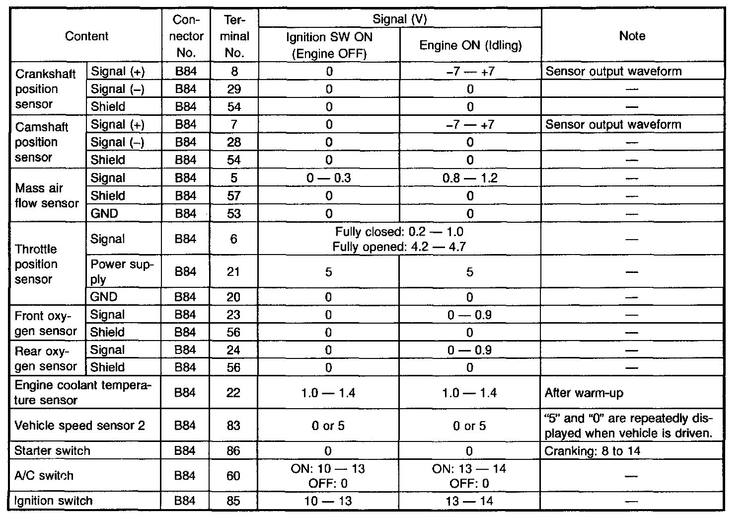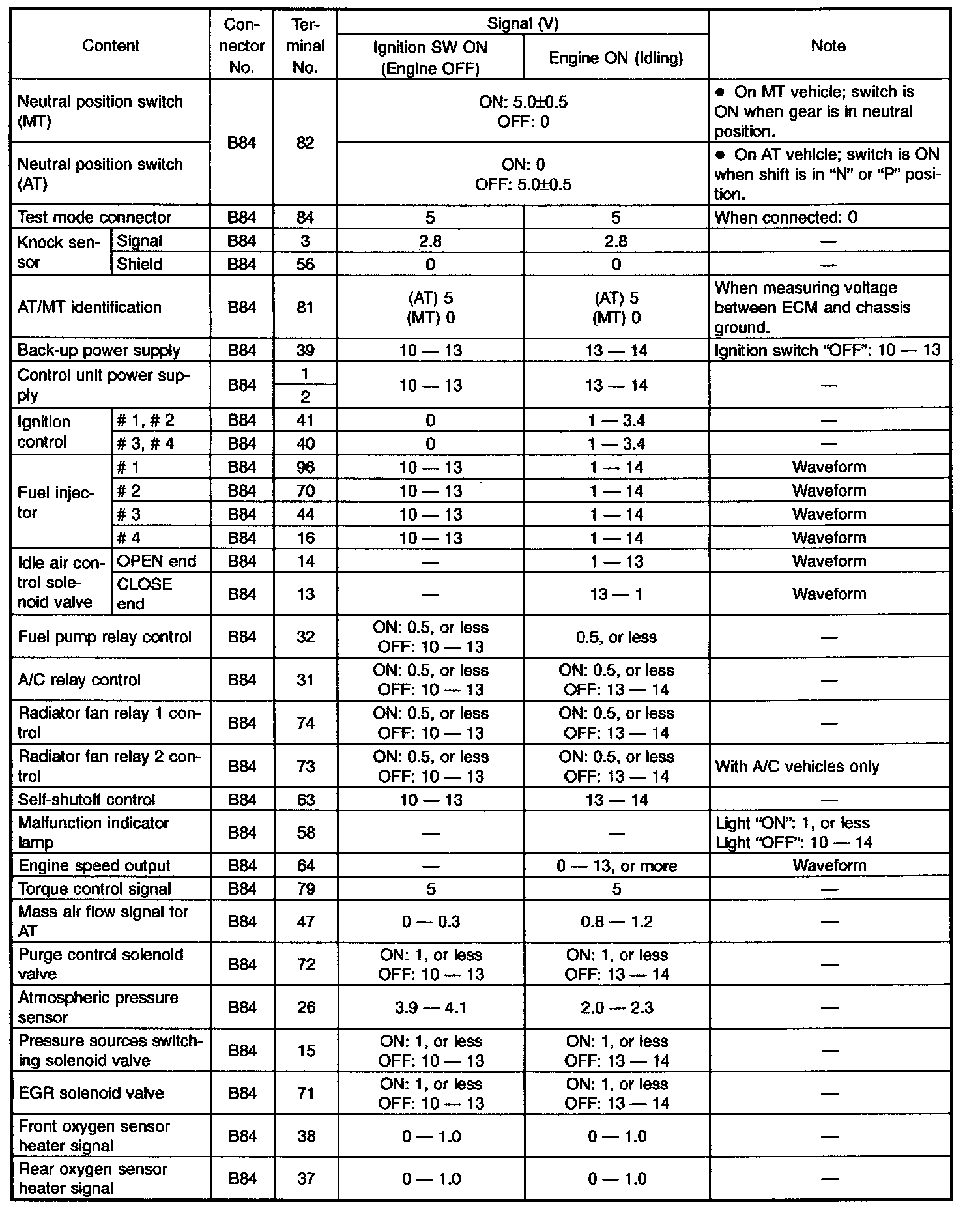 ENGINE CONTROL MODULE (ECM) I/O SIGNAL