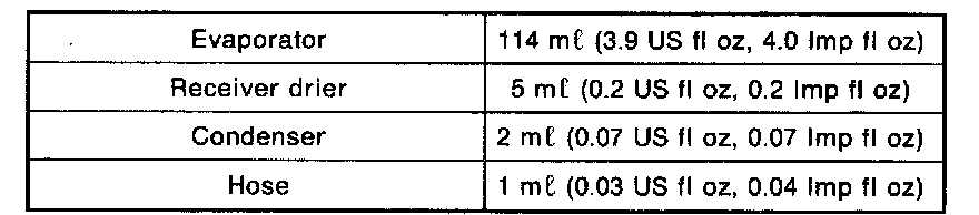2. Drain the oil from the replacement compressor and refill with the same amount that was drained from the original [20 ml (0.7 US fl oz, 0.7 Imp fl oz) minimum]. Always use ZXL100PG for the replacement oil.