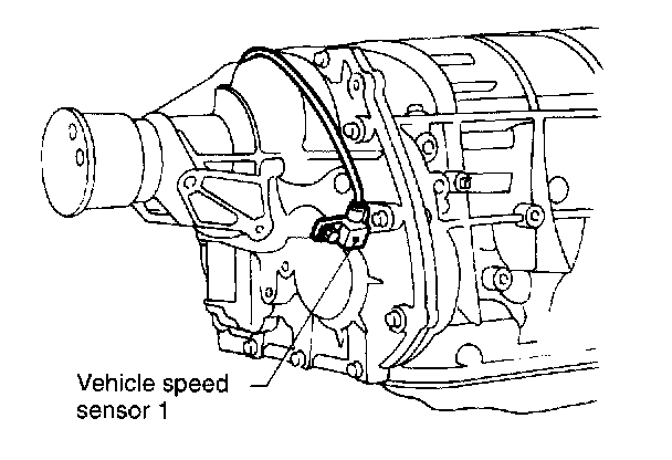 The vehicle speed sensor 1 is mounted to the transmission case (at the rearside of the case). The sensor outputs a pulse signal which is transmitted to the TCM where it is converted to vehicle speed.