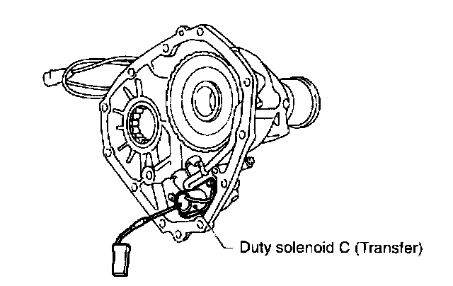 This solenoid is mounted to the transfer control valve on the side of extension case, and its duty ratio is controlled by the signal sent from TCM. It then controls the transfer control valve for controlling the transfer clutch hydraulic oil pressure.