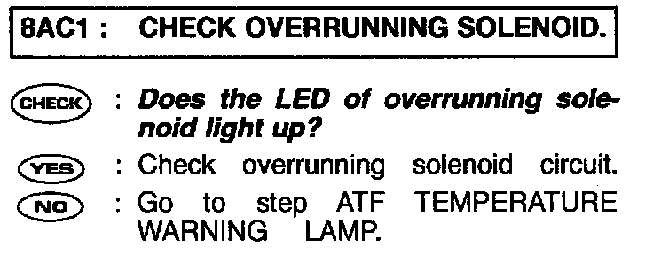 CHECK OVERRUNNING SOLENOID.
