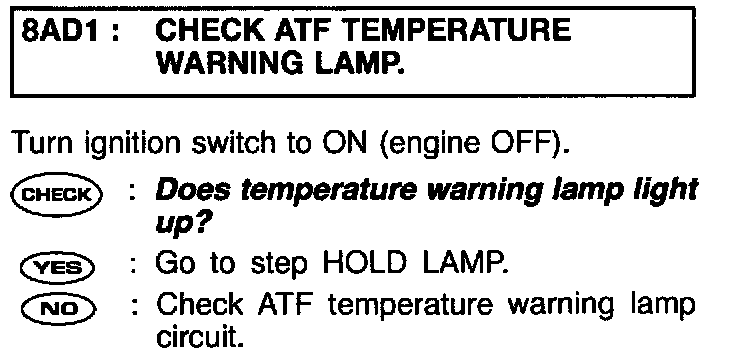 CHECK ATF TEMPERATURE WARNING LAMP.