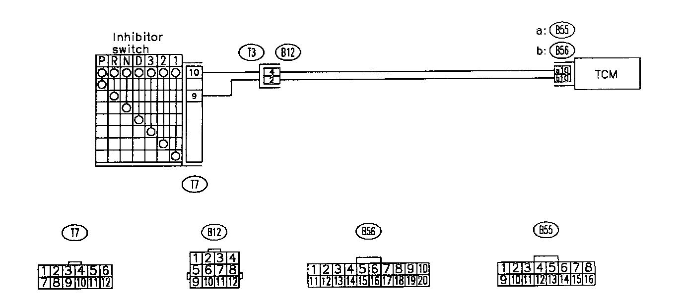 CHECK "R" RANGE SWITCH Diagnosis: Input signal circuit of "R" range is open or shorted. Wiring Diagram: