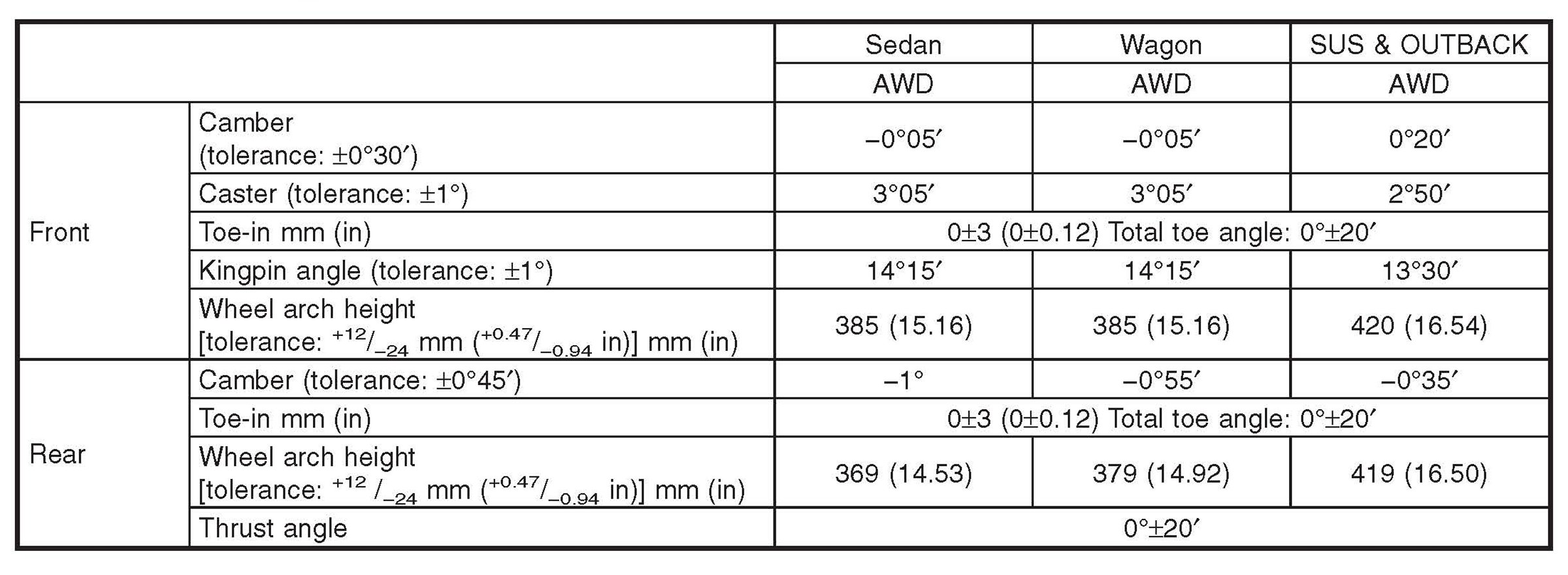Wheel Alignment Specifications
