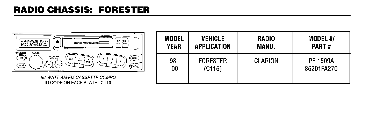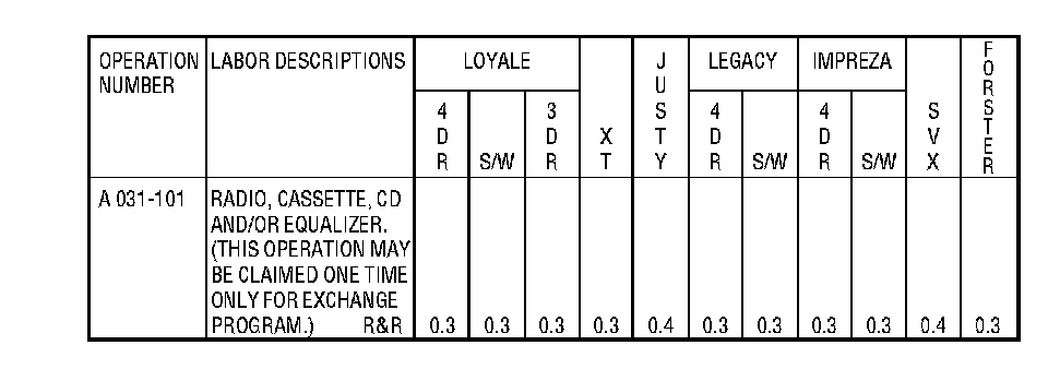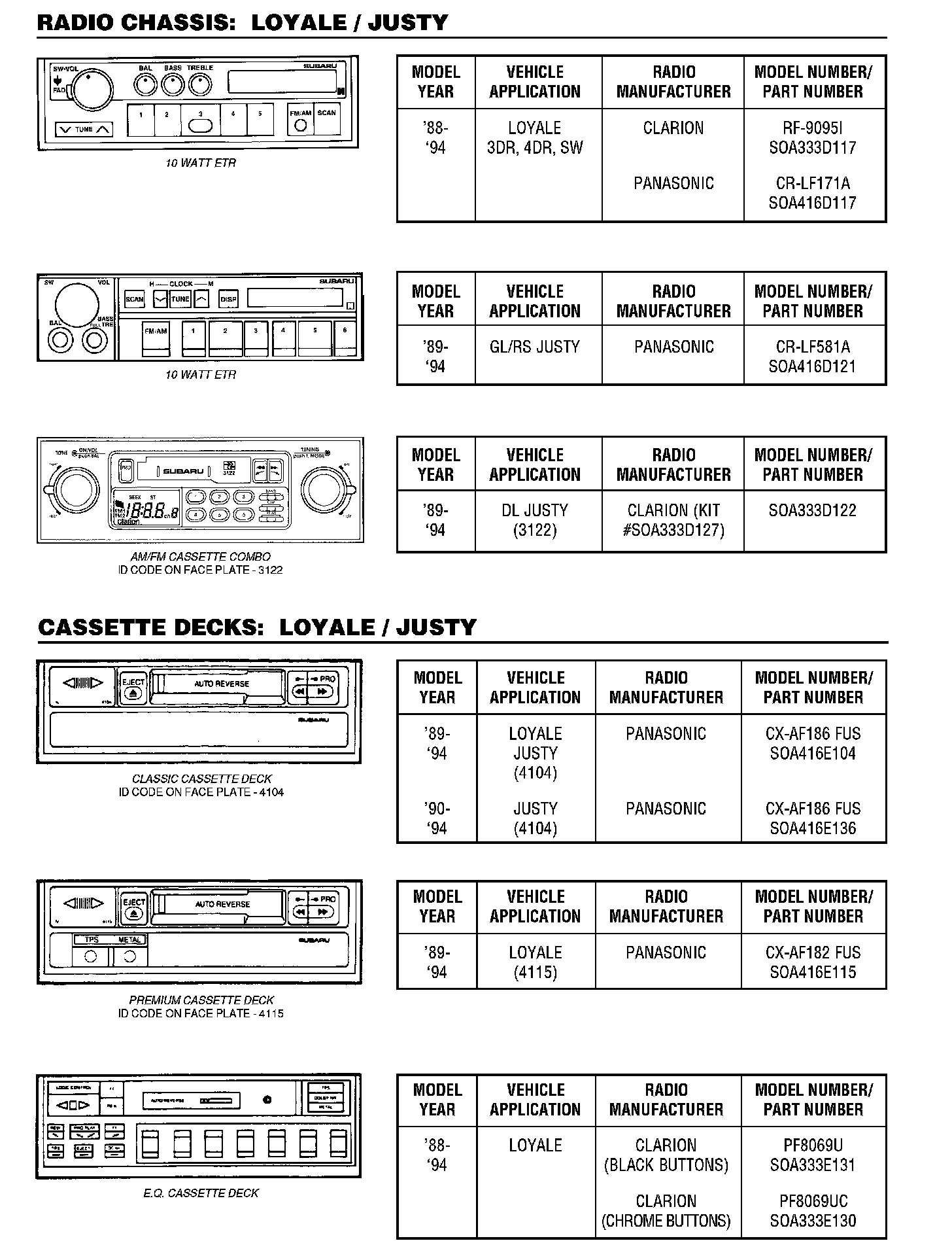 Within the terms of the Basic New Car Warranty, the Audio Exchange Program provides for replacement of a defective audio chassis with an exchange unit from the manufacturer. The manufacturer will supply an exchange unit, or a new unit in the case of a "New" and "In-stock" vehicle. Genuine Subaru audio systems are manufactured by Clarion and Panasonic. In the event an audio chassis requires an exchange, it is not necessary to remove the unit from the vehicle. The procedures listed below should be followed: