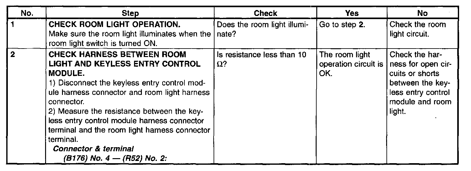 Check Room Light Operation