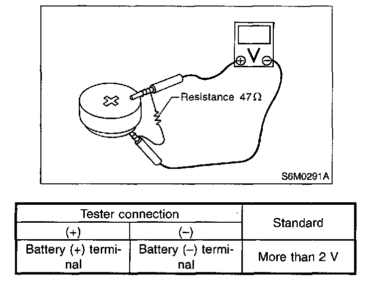 Measure voltage between battery (+) terminal and (-) terminal.