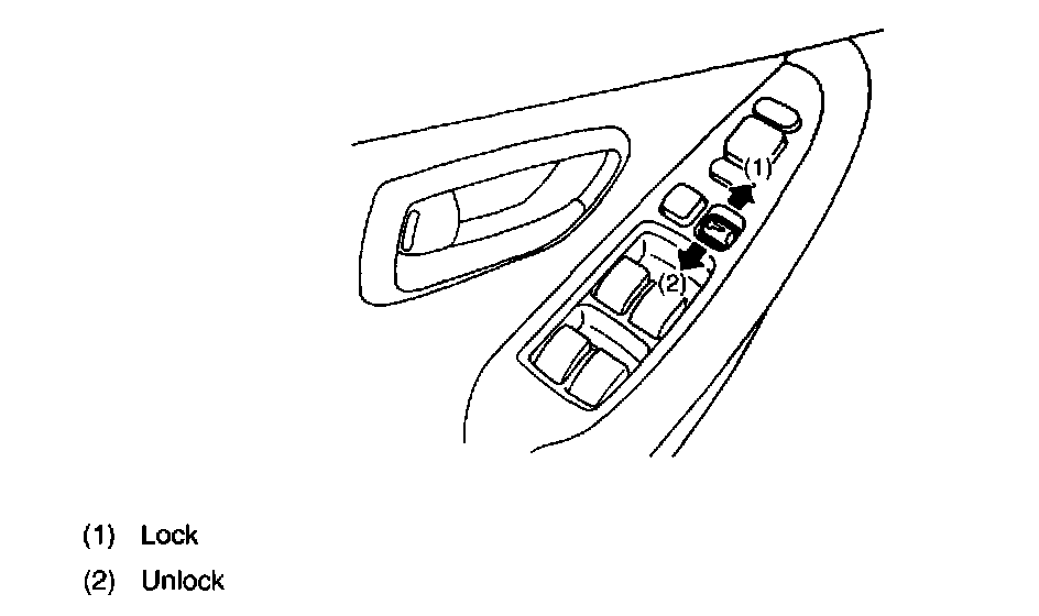The power door lock system consists of driver's and front passenger's door lock switches, front door lock actuators, rear door lock actuators, and a rear gate lock actuator (WAGON).