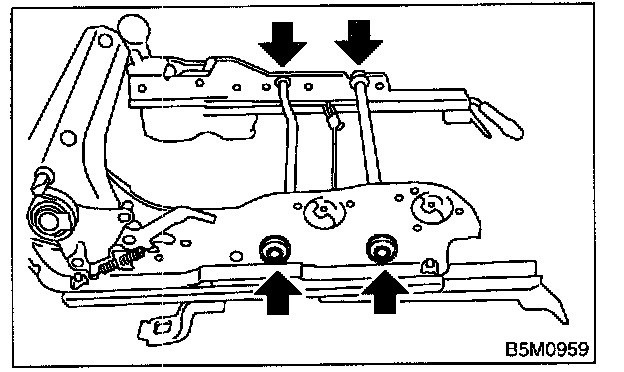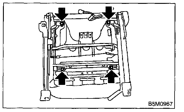17. Remove the 4 bolts of seat hinge assembly, and then remove seat cushion. Tilt type vehicle: