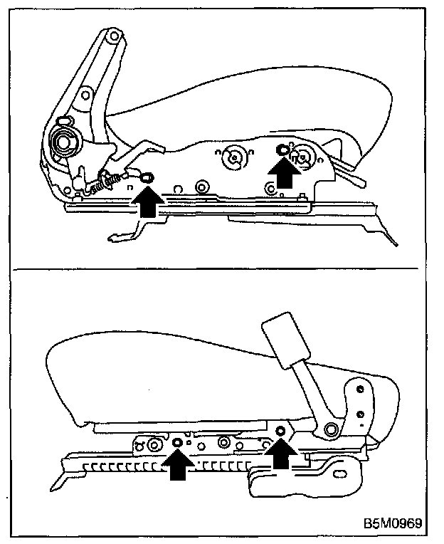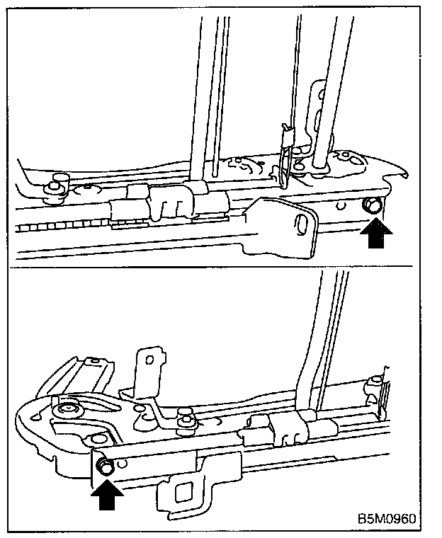 29. Remove 2 bolts, and then remove slide rail. (Non-tilt type vehicle)