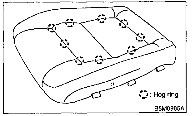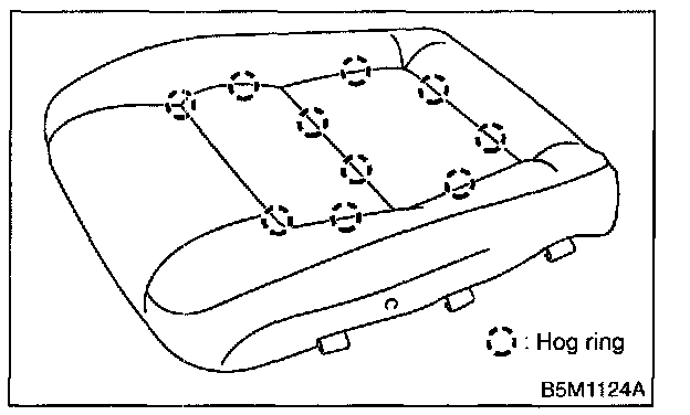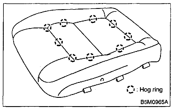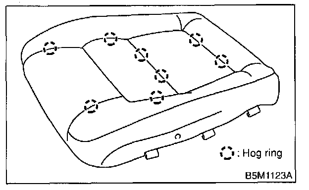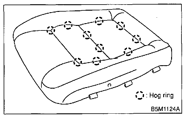 11. Remove hog rings, and then remove seat heater. (Seat heater equipped vehicle)