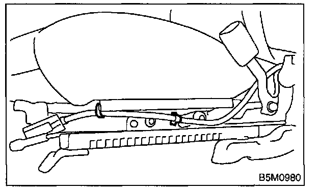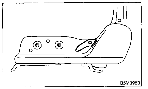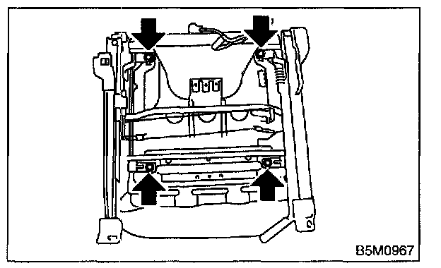 14. Remove clamp of airbag wire harness on back side of seat. (Side airbag equipped vehicle)