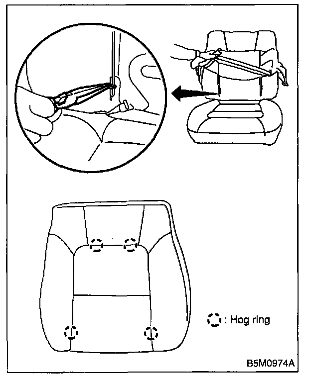 4. Remove hook on back side of seat, and remove hog rings using a plier.