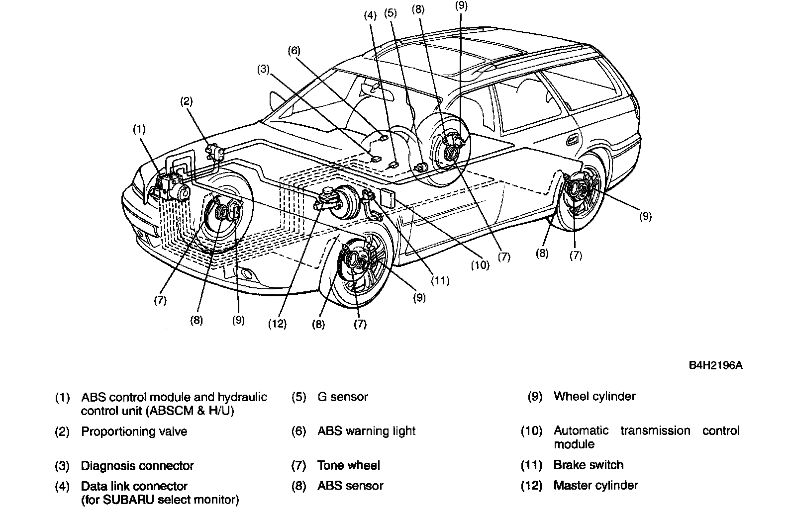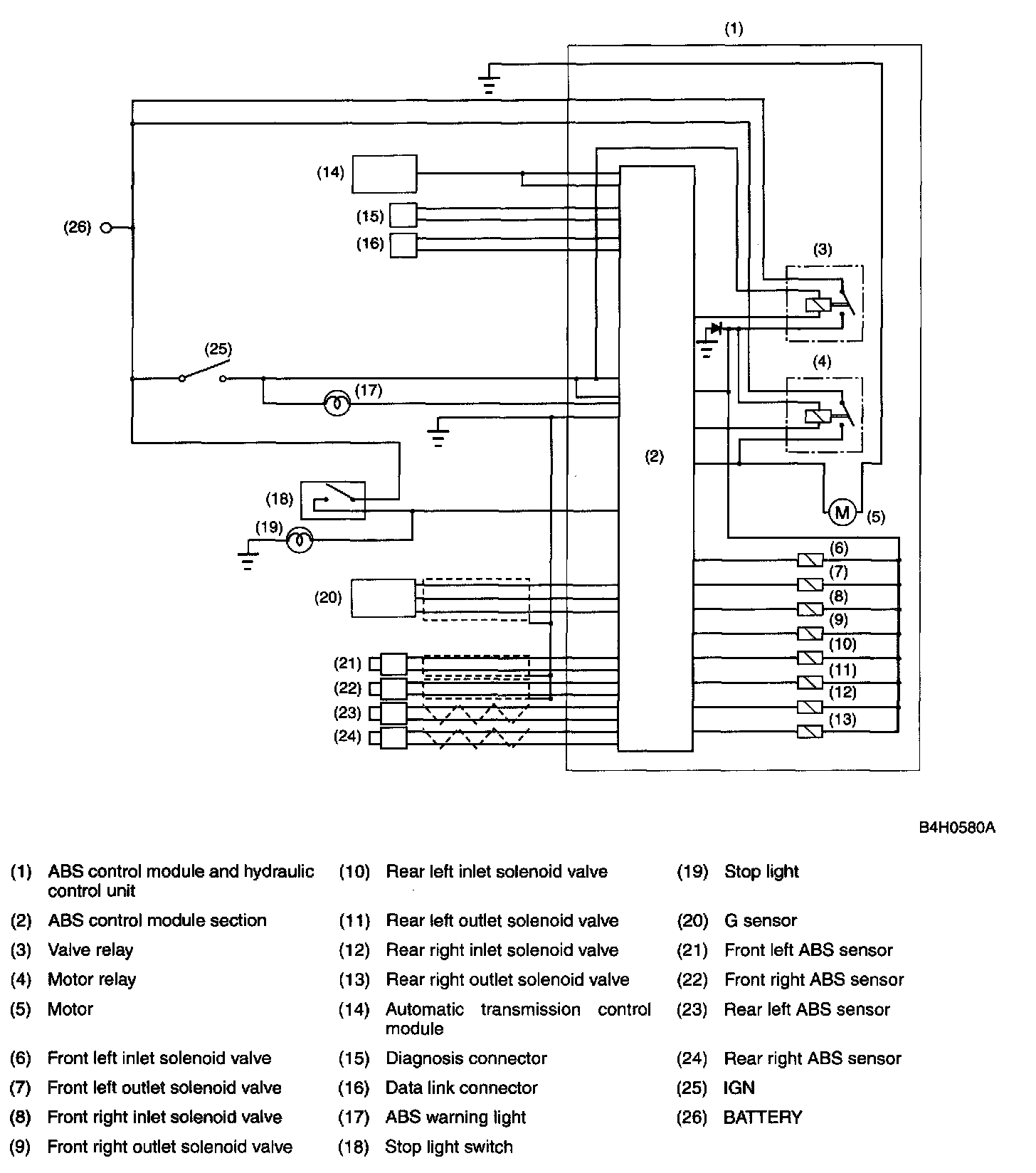 ^ The 5.3i type ABS used in the Legacy has a hydraulic control unit, an ABS control module, a valve relay and a motor relay integrated into a single unit (called "ABSCM & H/U") for circuit simplicity and reduced weight.