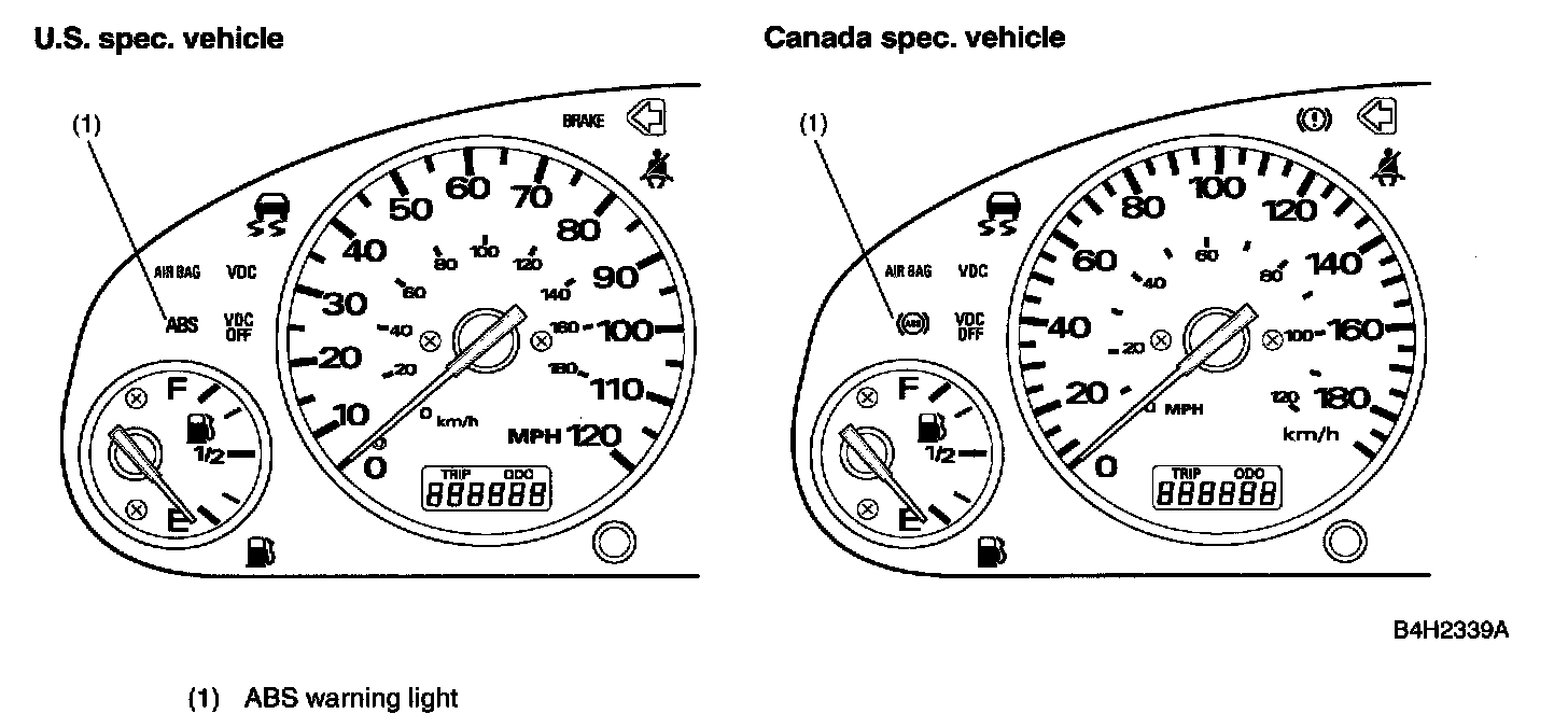 ^ If the ABS becomes inoperative, a fail-safe system is activated to ensure same level of braking performance as with a conventional brake system. In that case, the warning light comes on to indicate that the ABS is malfunctioning.
