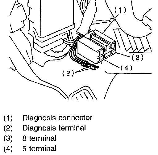1. After calling up a diagnostic trouble code (DTC), disconnect diagnosis connector terminal 8 from diagnosis terminal.
