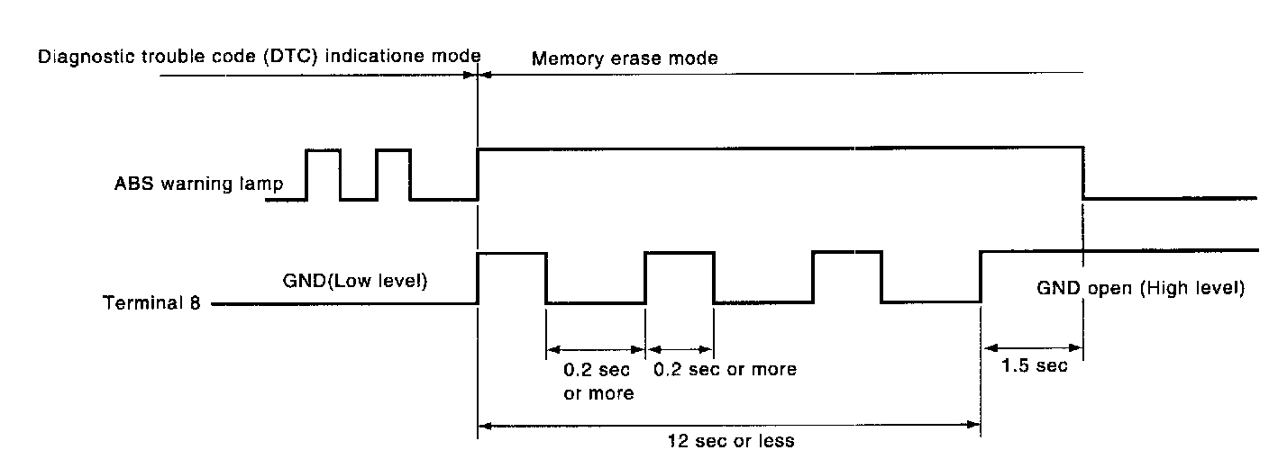 2. Repeat 3 times within approx. 12 seconds; connecting and disconnecting terminal 8 and diagnosis terminal for at least 0.2 seconds each time.