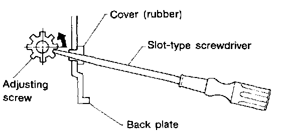 2. Turn adjusting screw using a slot-type screwdriver until brake shoe is in close contact with disc rotor