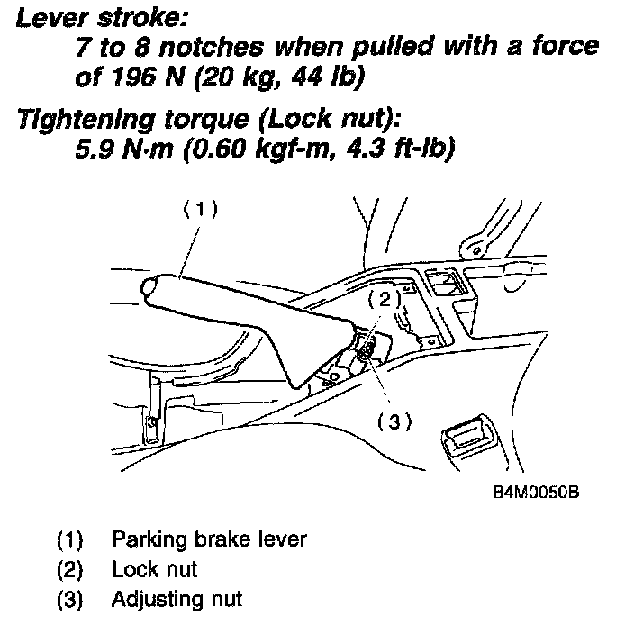 Lever stroke: 7 to 8 notches when pulled with a force of 196 N (20 kgf, 44 lb)