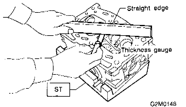 3) Measure the warping of the cylinder head surface that mates with crankcase using a straight edge and thickness gauge.
