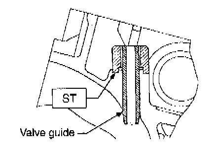 b) Insert ST2 into valve guide and press it down to remove valve guide.