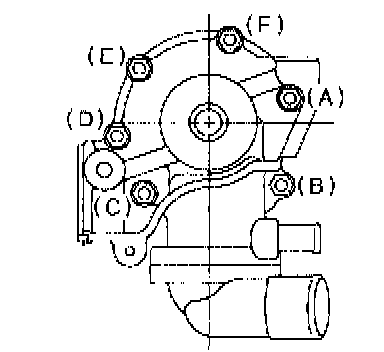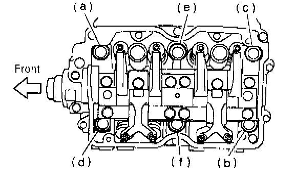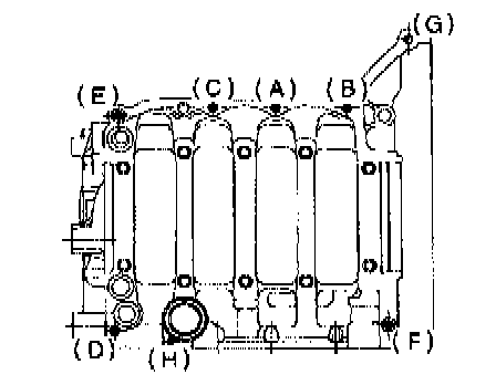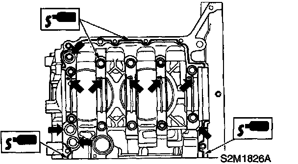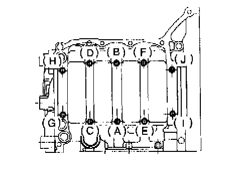 4) Tighten 10 mm cylinder block connecting bolts in alphabetical sequence.