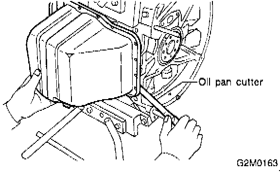 c) Insert a oil pan cutter blade between cylinder block-to-oil pan clearance and remove oil pan.