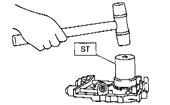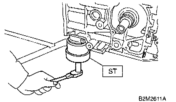 6) Install rear oil seal using ST1 and ST2.