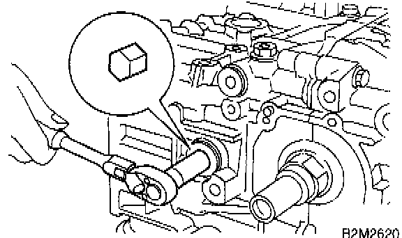 32) Back off bolts which connect cylinder block on the side of #1 and #3 cylinders two or three turns.