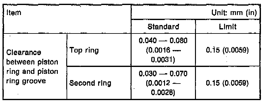 CAUTION: Before measuring the clearance, clean the piston ring groove and piston ring.