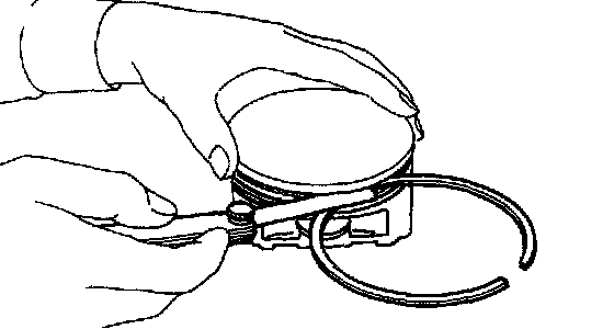 4) Install oil ring spacer, lower rail and upper rail in this order by hand. Then install second ring and top ring with a piston ring expander.