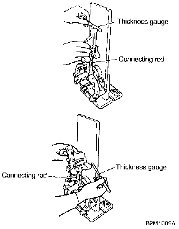 c) Install connecting rod fitted with bearing to crankshaft and measure the side clearance (thrust clearance). Replace connecting rod if the side clearance exceeds the specified limit.