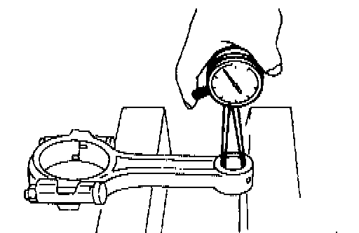 b) Check for bend or twist using a connecting rod aligner. Replace connecting rod if the bend or twist exceeds the limit.