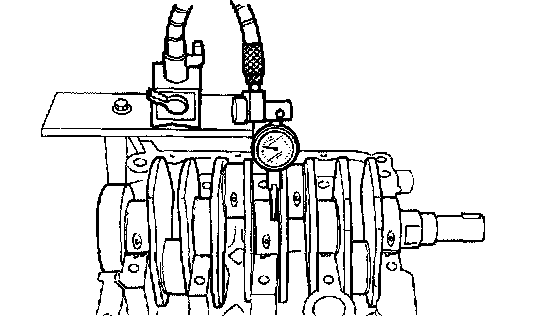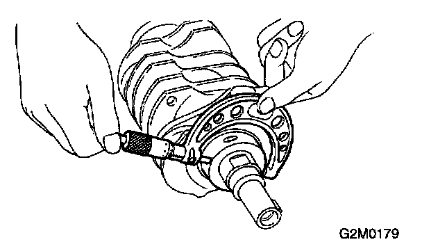 CAUTION: If a suitable V-block is not available, install #1 and #5 crankshaft bearing on cylinder block, position crankshaft on these bearings and measure crankshaft bend using a dial gauge.