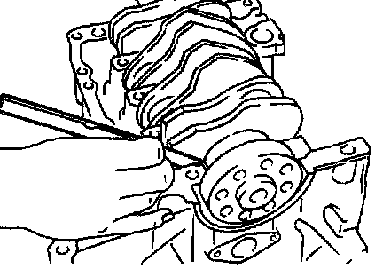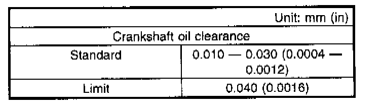 d) Measure the thrust clearance of crankshaft at center bearing. If the clearance exceeds the limit, replace bearing.