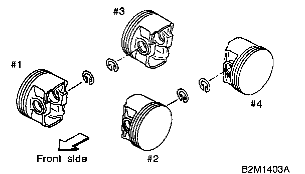 CAUTION: Piston front mark faces towards the front of the engine.