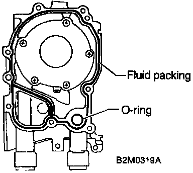 CAUTION: Do not allow fluid packing to jut into O-ring grooves, oil passages, bearing grooves, etc.
