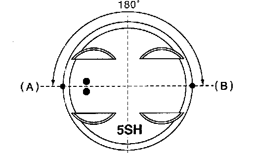 7) Position the top ring gap at (A) or (B) in the figure.