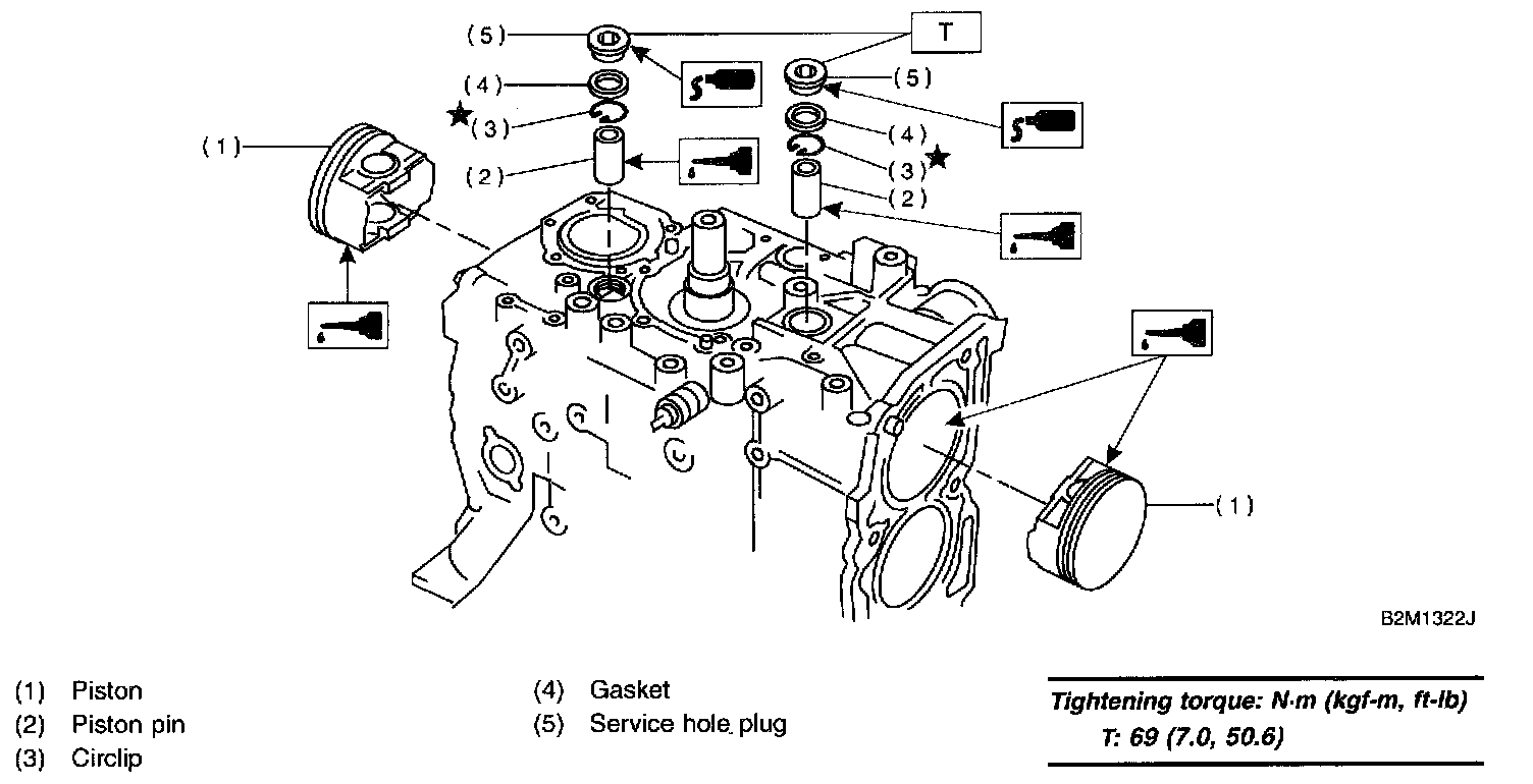 CAUTION: Be careful not to confuse original combination of piston, piston pin and cylinder.