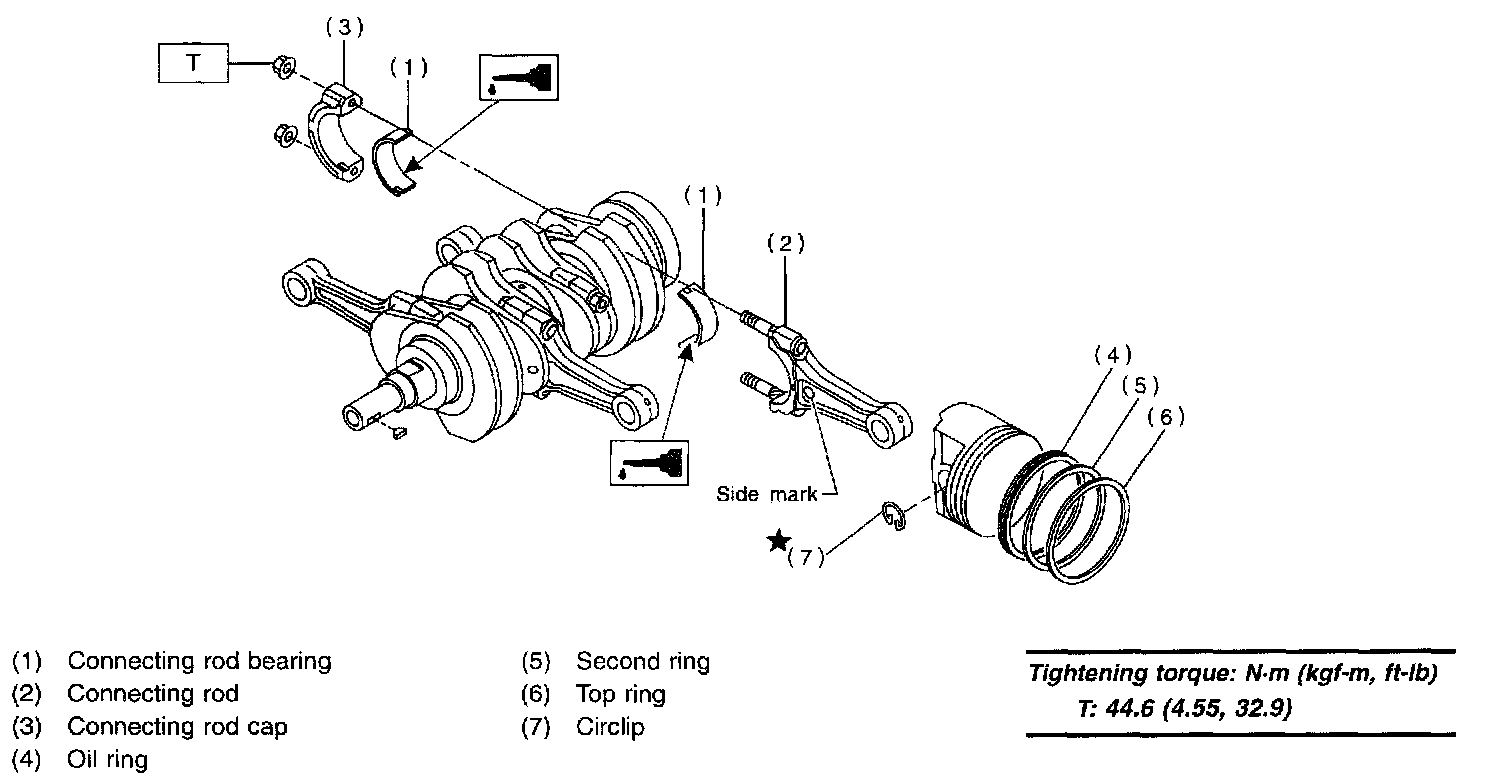 Tightening torque: 47 ± 3 Nm (4.8 ± 0.3 kgf-m, 34.7 ± 2.2 ft. lbs.)