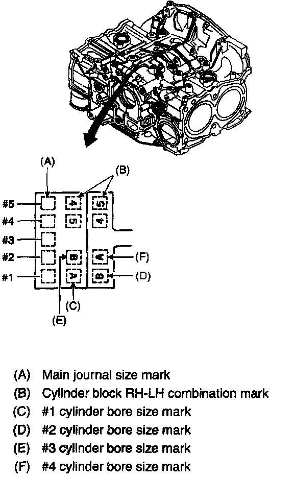 a) The cylinder bore size is stamped on the cylinder block's front upper surface.