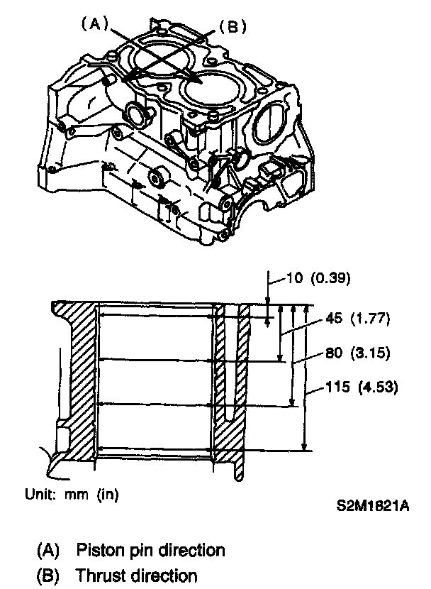 (1) If the value of taper, out-of-roundness, or cylinder-to-piston clearance measured exceeds the specified limit or if there is any damage on the cylinder wall, rebore it to use an oversize piston.